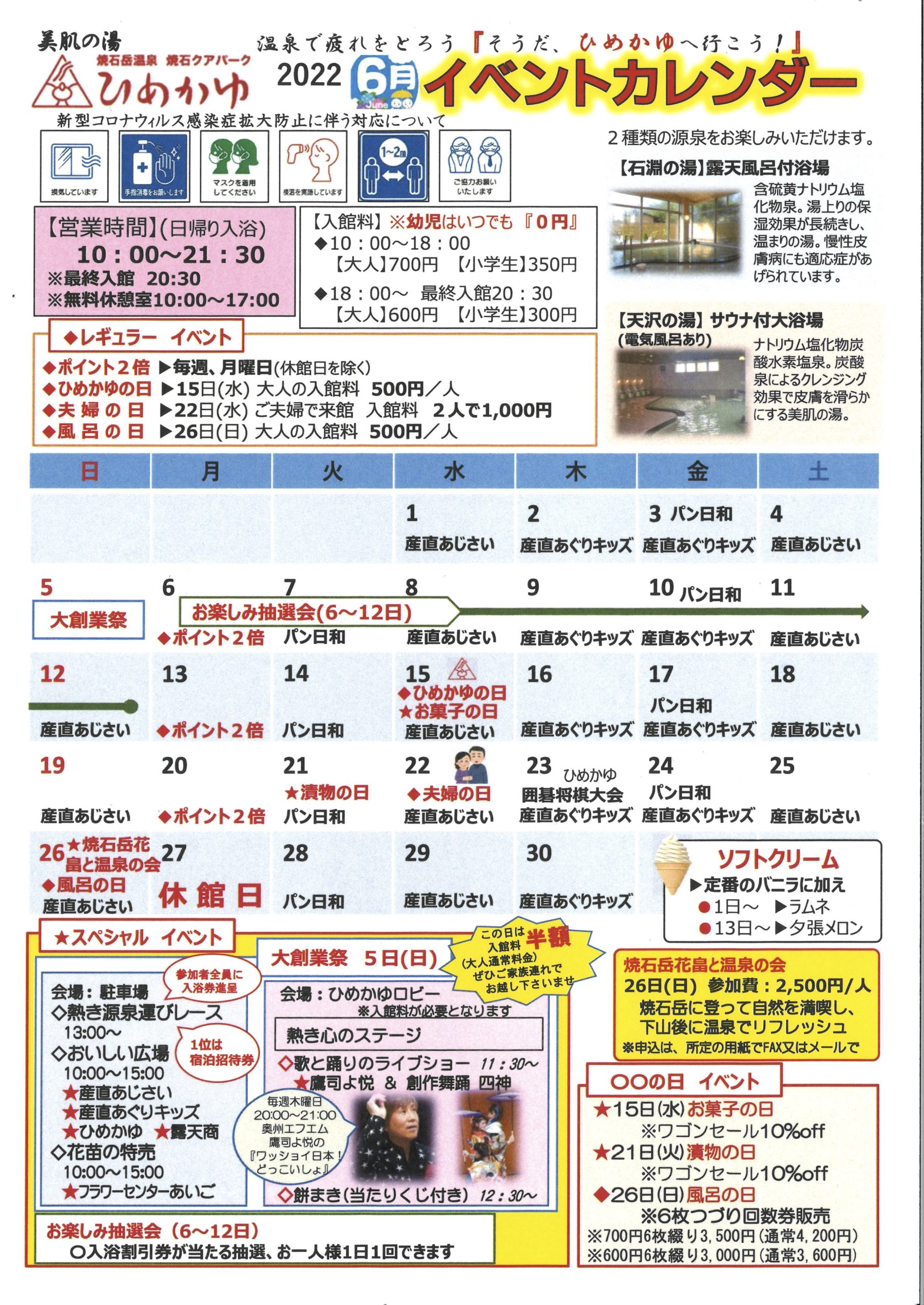 遅くなりましたが、6月のイベントカレンダー出来上がりました!