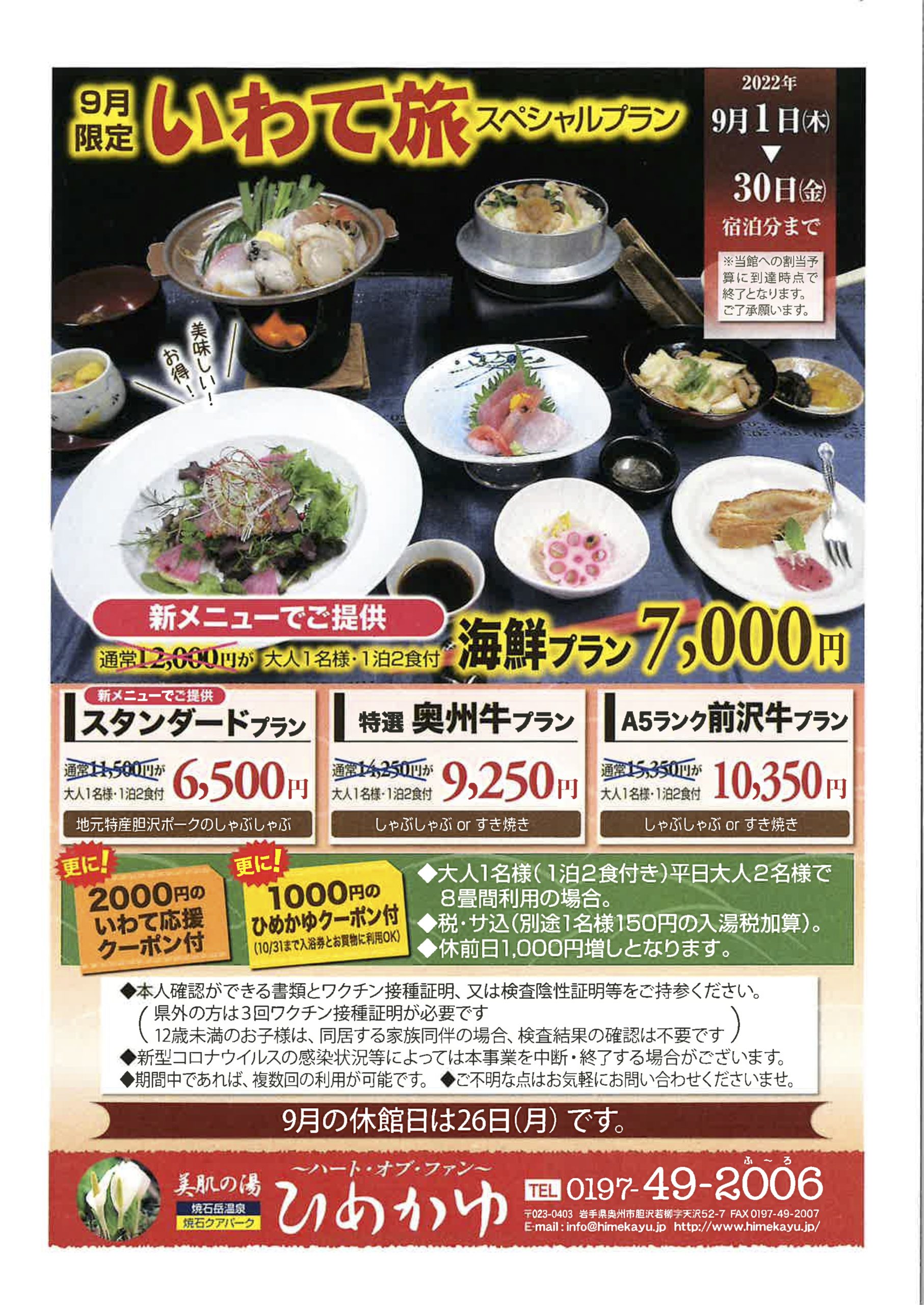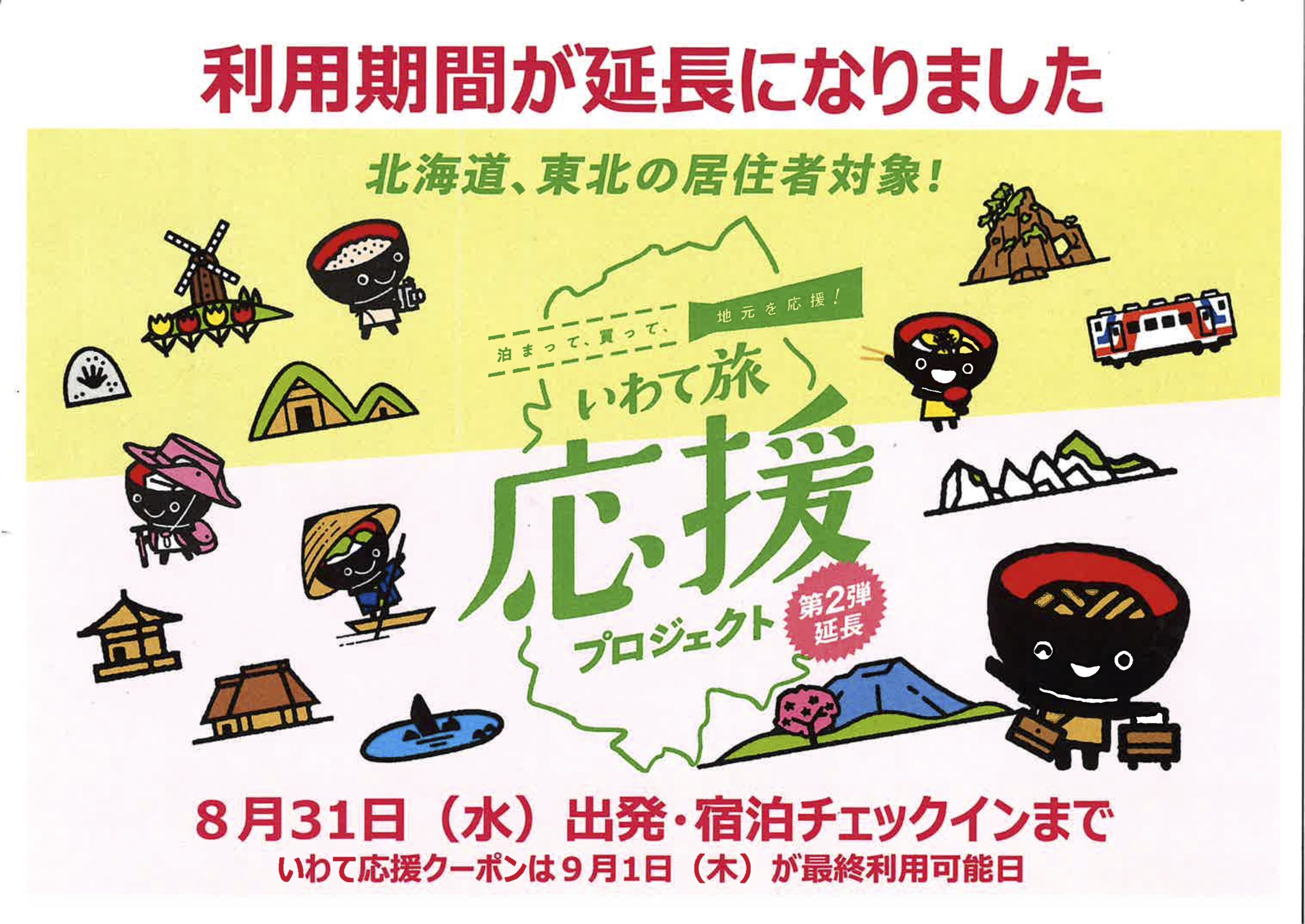 いわて旅応援プロジェクト(県民割)が8/31まで延長となりました。 ござえんちゃキャンペーンが適用される7/31まではW割引でお得にご宿泊いただけます。 県民割は1泊2食付きプラン限定となっております。 この機会に是非ひめかゆまでお越しくださいませ。