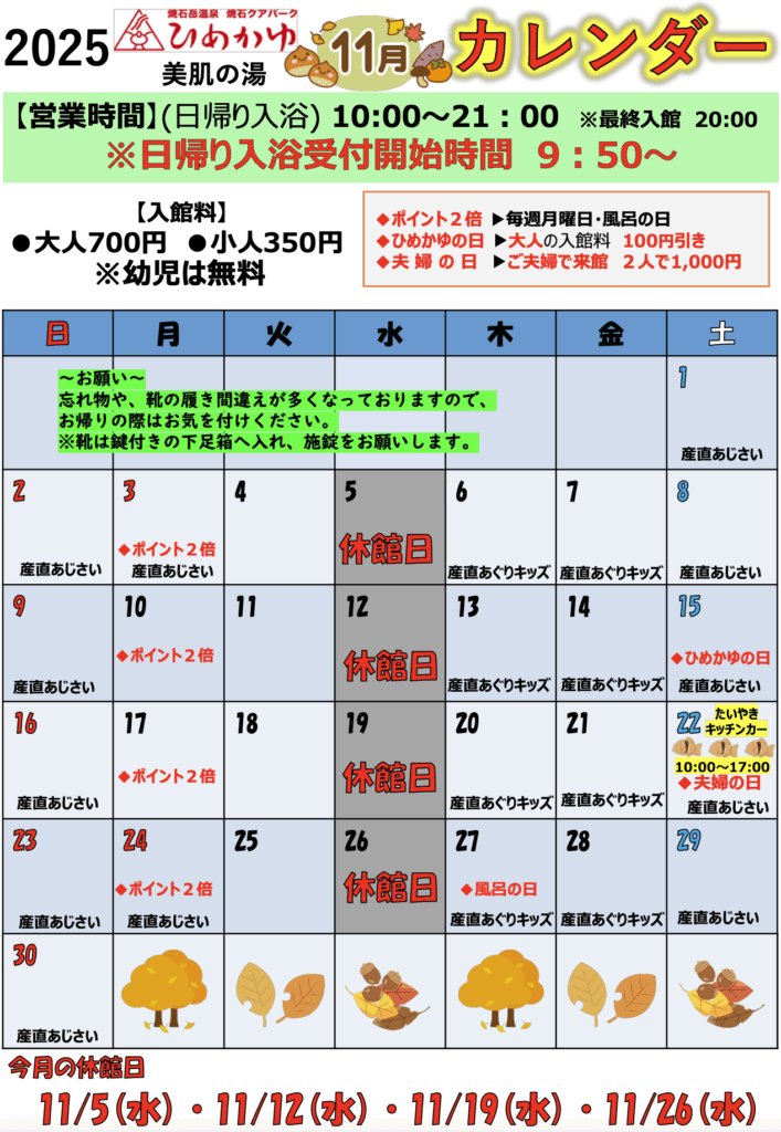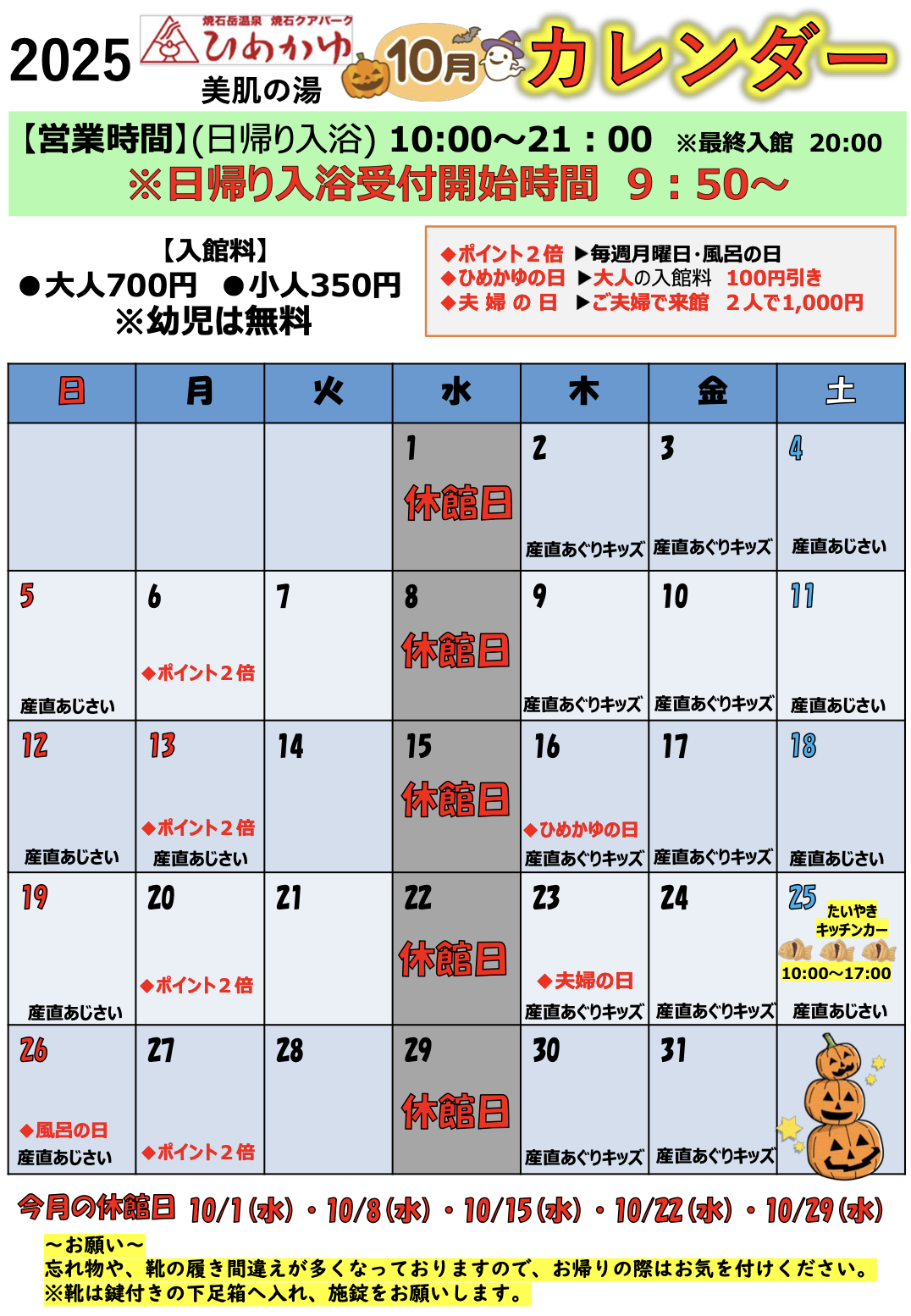 10月のイベントカレンダーです! 皆様のお越しをお待ちしております。