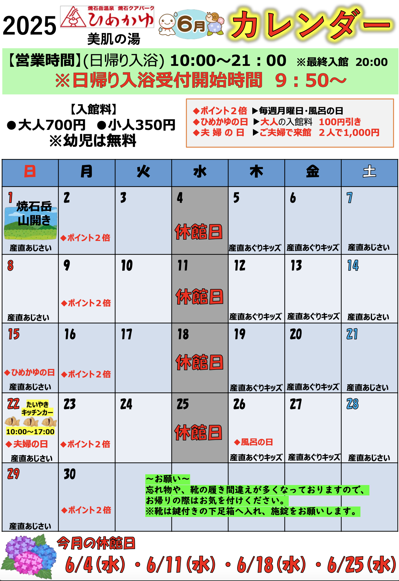 6月のイベントカレンダーです! 皆様のお越しをお待ちしております。