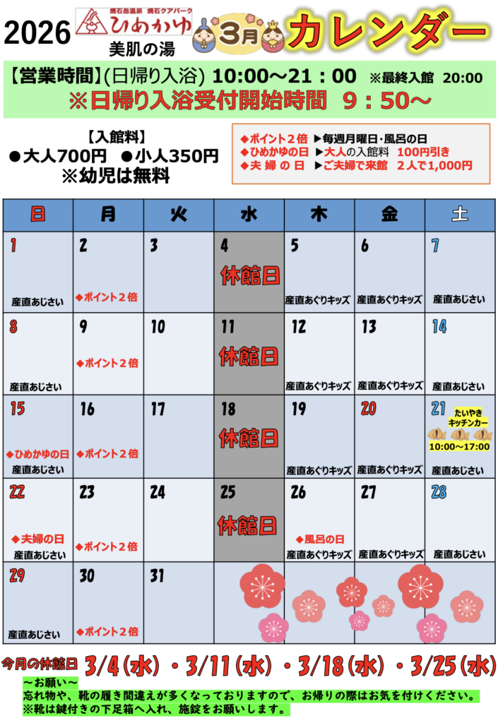 3月のイベントカレンダーです!