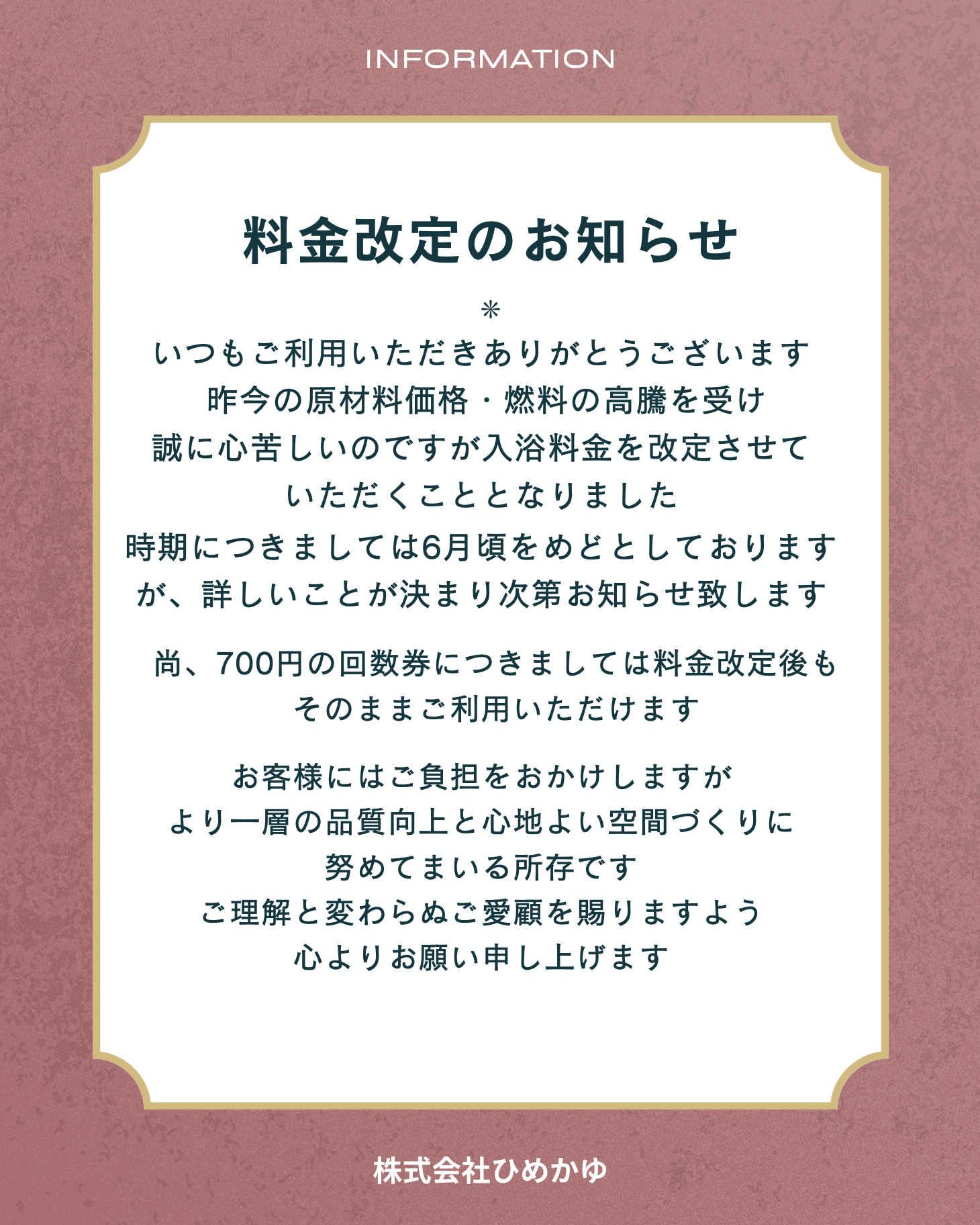 料金改定のお知らせ